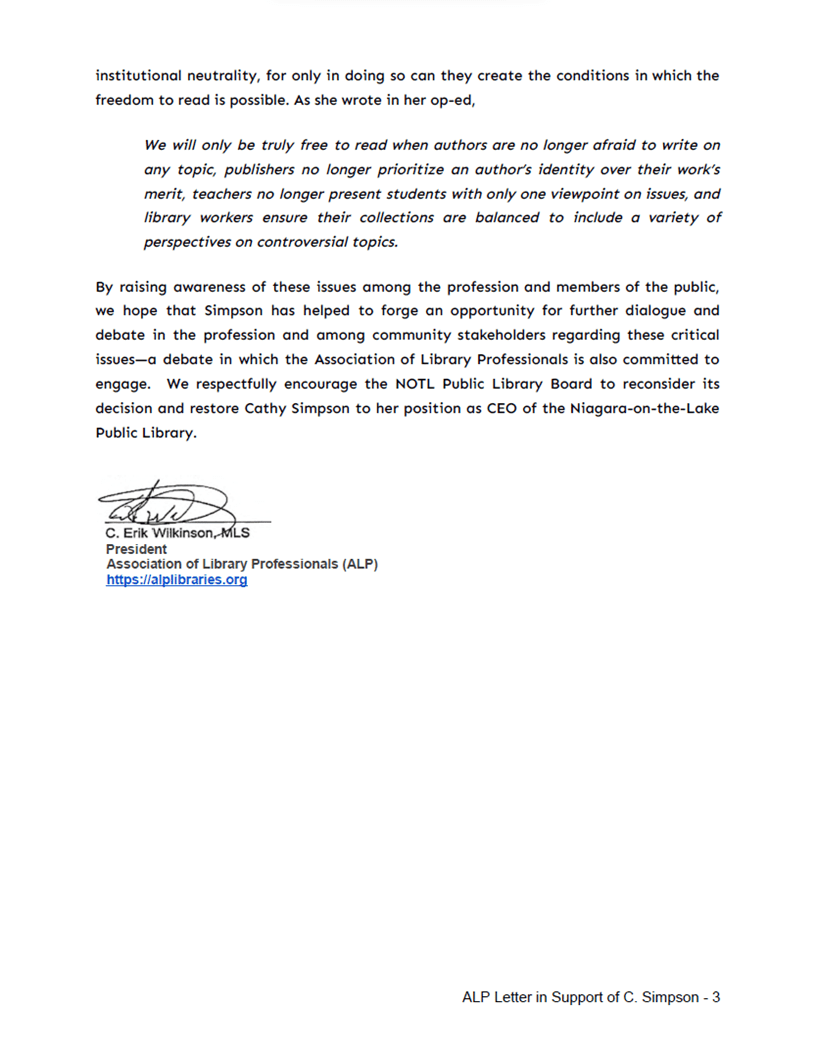 Press Releases Media Inquiries? Contact media@alplibraries.org Click pages for PDF v Open Letter Below v